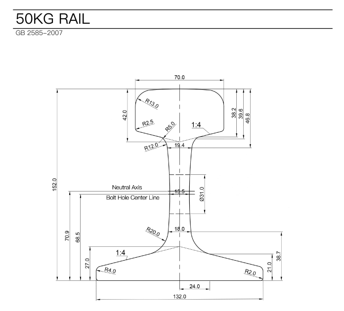 Internationally Recognized Standard: P50 is a widely recognized rail specification with a long application history, especially in regions such as Asia, Africa, and the Middle East.