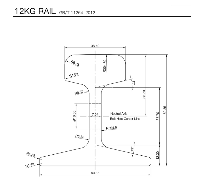 12kg steel rail is mainly used for the laying of temporary transportation lines and light locomotive lines for forest areas, mining areas, factories and construction sites. 12kg steel rail is used for laying temporary transport and light locomotive lines.